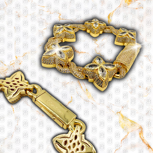 Brazaletes chapados en oro, con circonias incrustadas a mano que destellan poder...