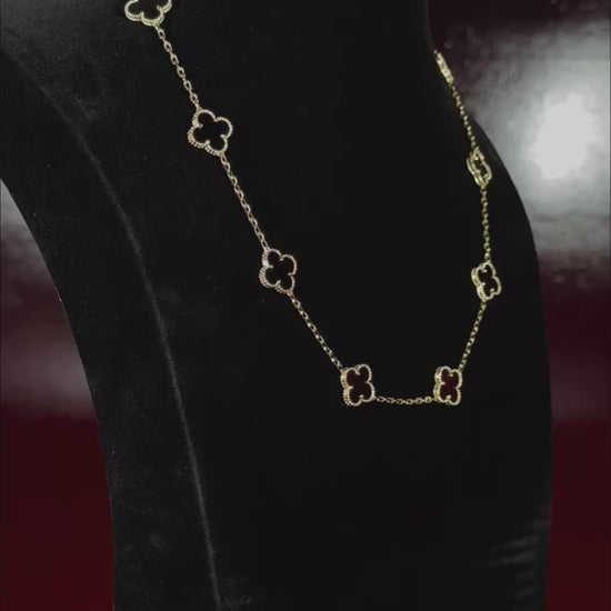 Cada trébol, símbolo de fortuna y éxito, está meticulosamente engastado sobre acero inoxidable 316L y recubierto con auténtico oro de 18 quilates.