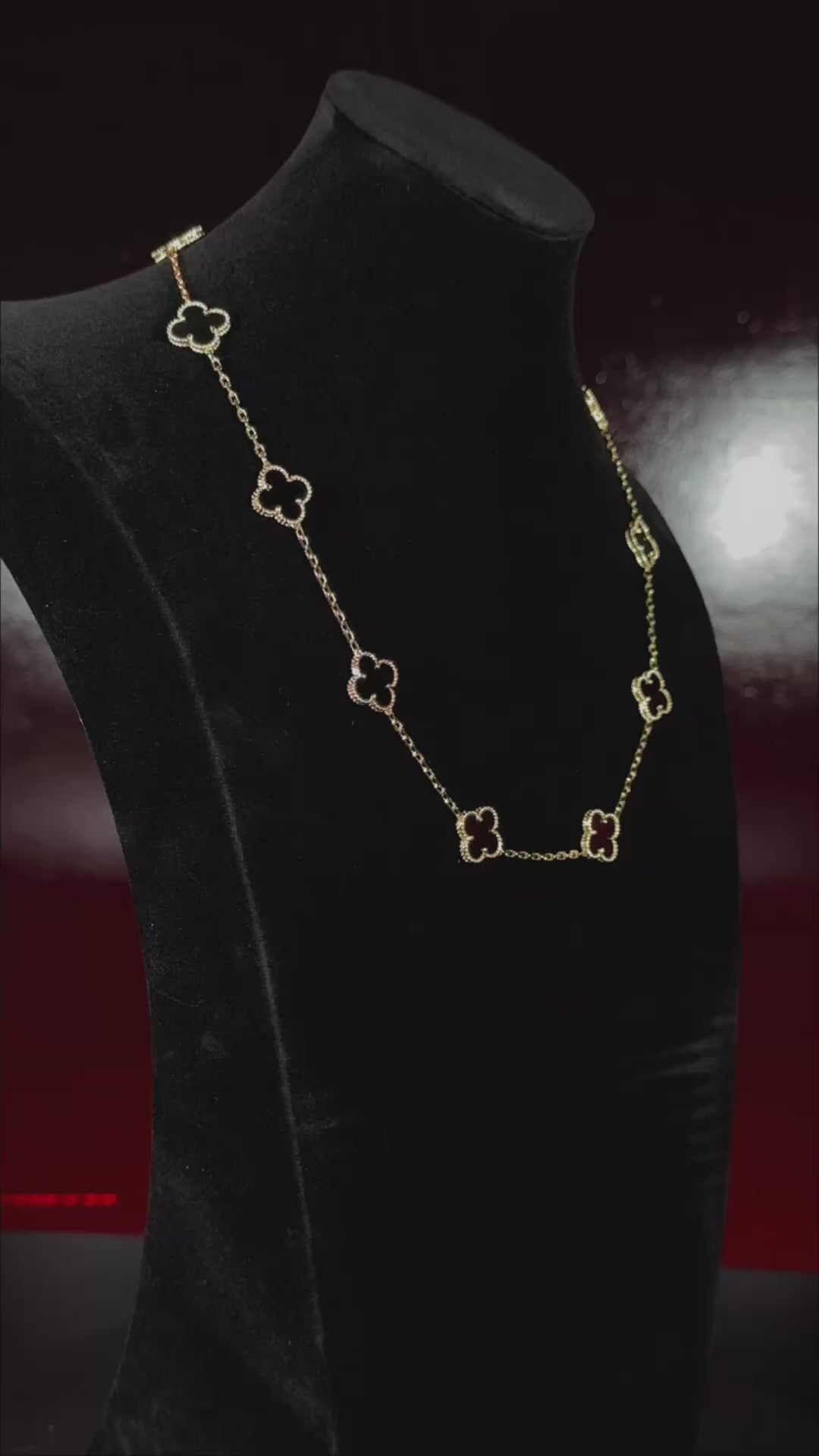 - Motivos: Tréboles negros esmaltados con borde texturizado.