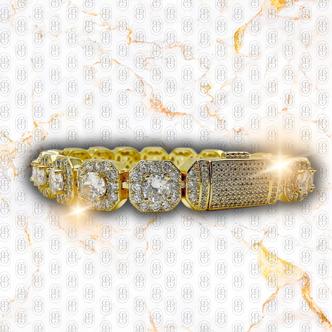 El brazalete Fortuna Elite redefine el lujo con su acero inoxidable de alta resistencia, chapado en oro de 18K y un diseño meticuloso. Sus micro circonias y circonias cúbicas 5A en distintos tamaños crean un brillo impresionante bajo cualquier luz. Su broche de caja aporta seguridad y un acabado elegante, ideal para quienes viven con éxito y ambición.