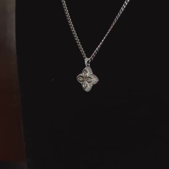 El Lucky Fiore de Capo D’Oro es un amuleto contemporáneo creado para quienes buscan llevar la suerte con estilo y sofisticación. Su diseño en forma de trébol de cuatro hojas —símbolo universal de buena fortuna— se realza con circonitas 5A+ en corte marquesa, disponibles en dos variantes exclusivas: Ice Blue y Champagne Gold. Cada pétalo está enmarcado por un pavé de microcirconitas que intensifican el brillo desde cualquier ángulo.