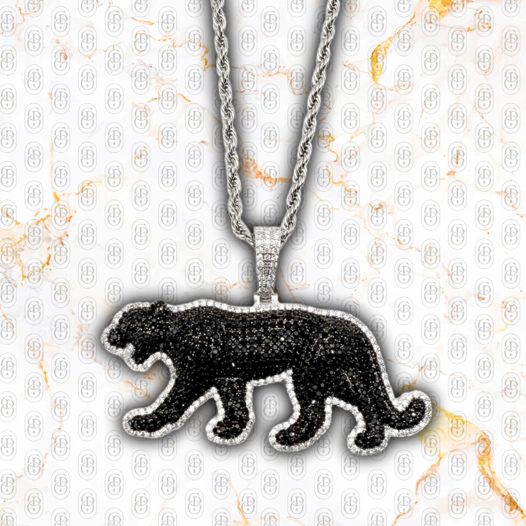 Pantera es más que un colgante: es un símbolo de fuerza silenciosa, dominio elegante y energía contenida. Esta pieza está meticulosamente fabricada en acero inoxidable 316L, con un lujoso baño de oro blanco de 18 quilates que sirve como base para un engaste impecable de circonias negras de alto brillo.