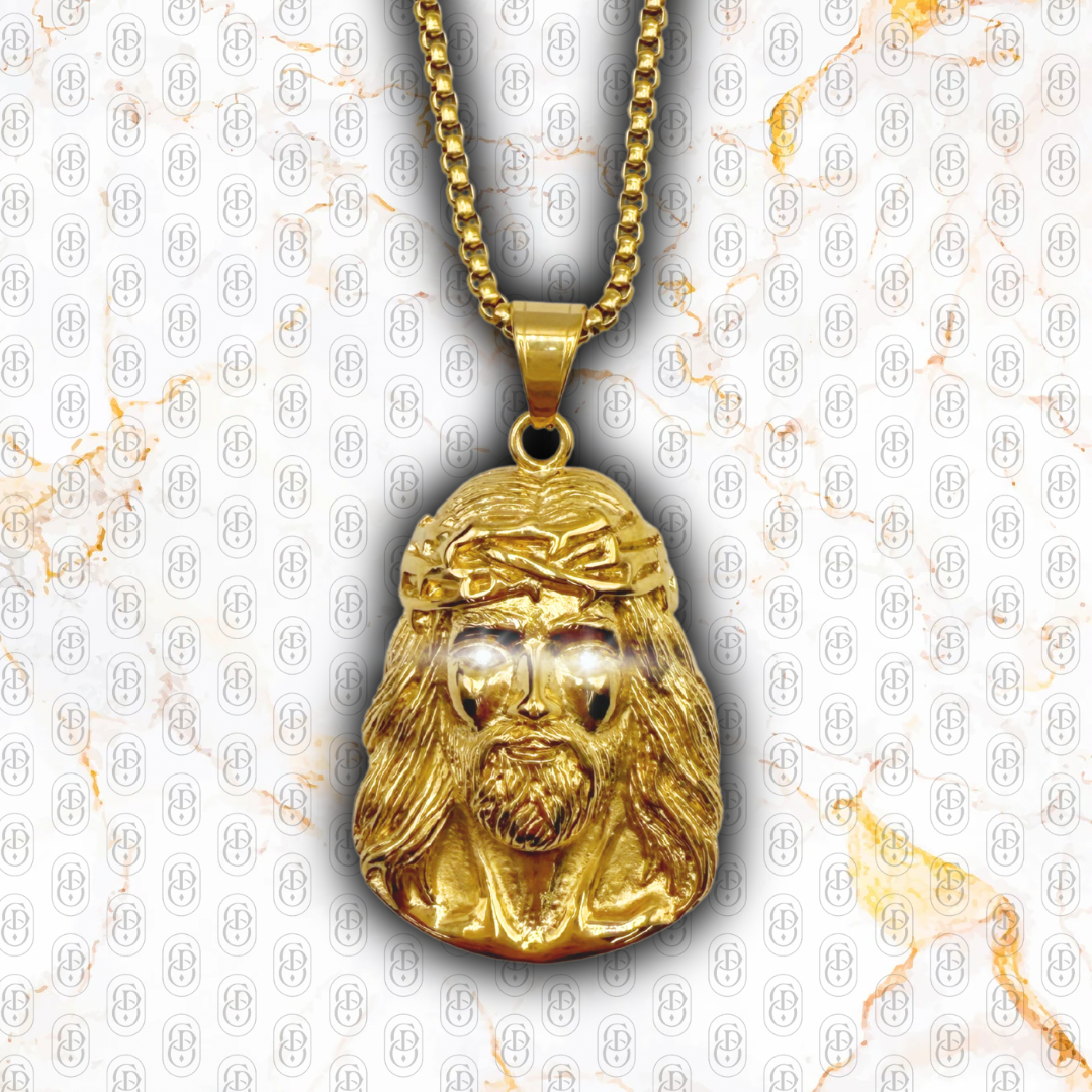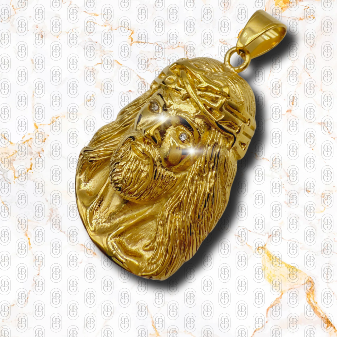 Una pieza que impone respeto y devoción desde el primer vistazo. El colgante Redentor captura la intensidad de una mirada que lo ha visto todo, representando a Cristo con una corona de espinas y lágrimas incrustadas en circonias, reflejando poder, sacrificio y gloria eterna.