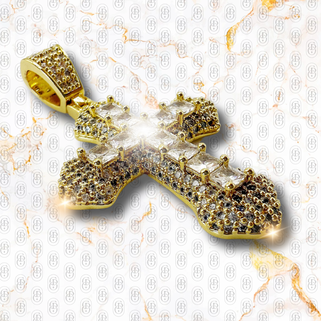 Un símbolo de poder y elegancia. Esta cruz, meticulosamente chapada en oro de 18K, deslumbra con circonitas cúbicas 5A de corte impecable, capturando la luz en cada ángulo. Su acabado de alta gama y detalles sofisticados la convierten en una joya imprescindible para quienes exigen lujo sin concesiones. Incluye cadena de soga de regalo.