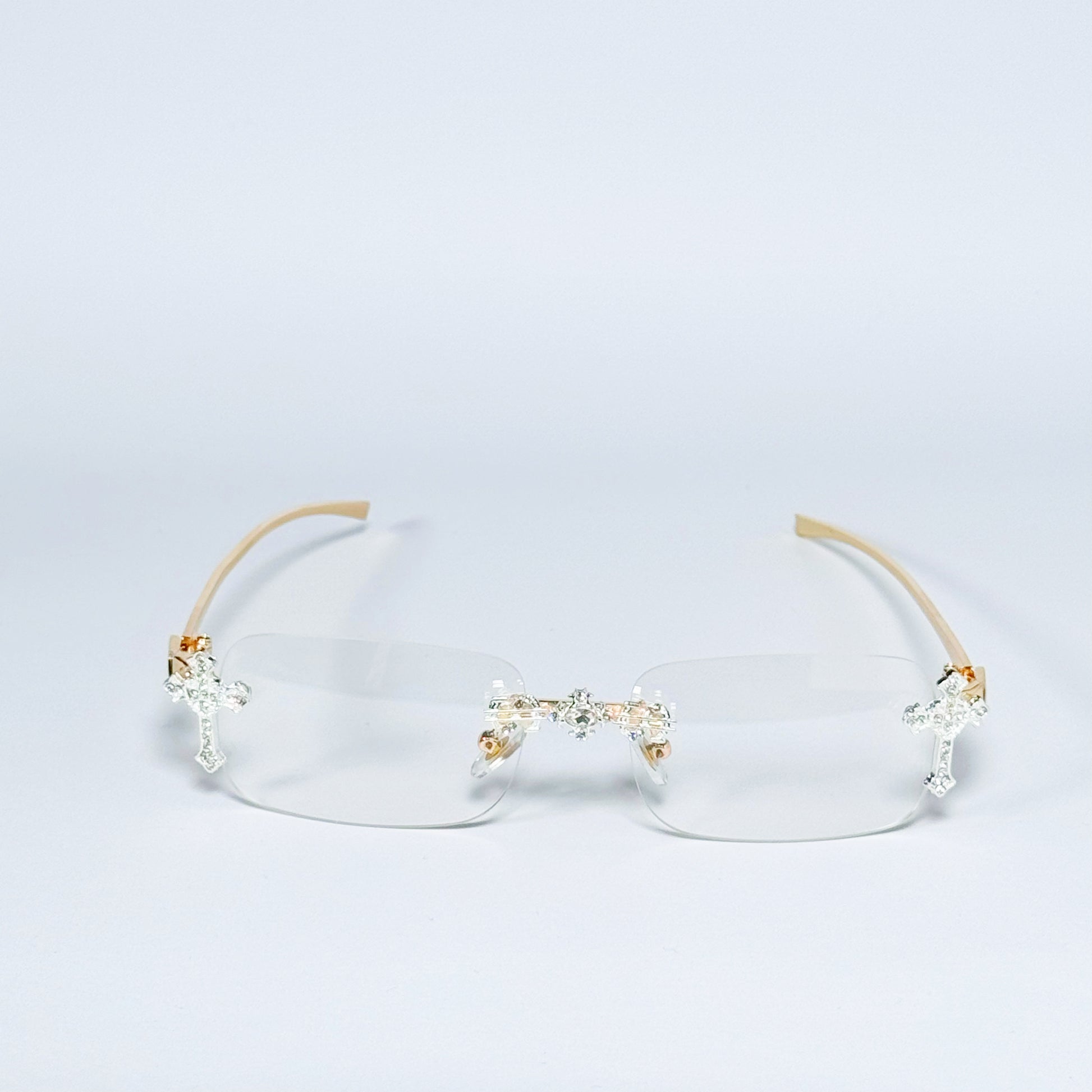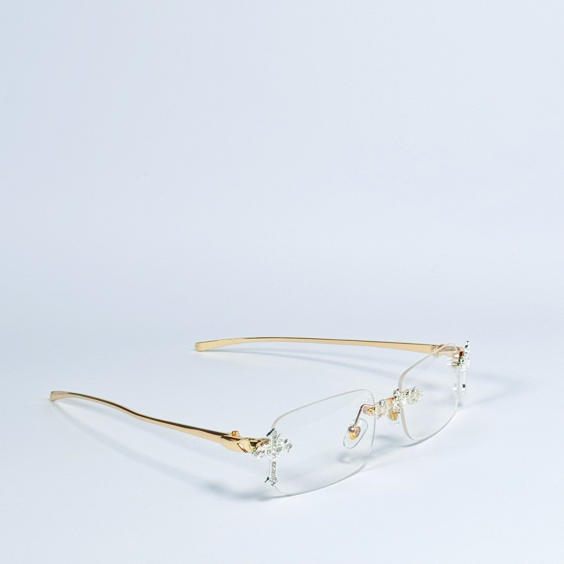 Sacro glasses capture the essence of Capo de Oro with an elegant aesthetic and luxurious details. With crosses adorned with zirconia on a gold frame, this design expresses distinction and a spiritual touch. Its high-quality construction and unique style are ideal for those looking for a sophisticated and symbolic accessory. Exclusivity and style in every detail.