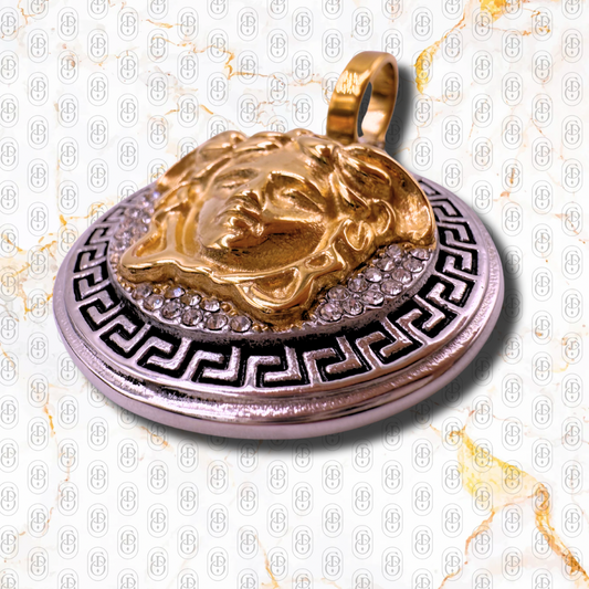 Medusa Black - Colgante Solido Acero Chapado en Oro 18K