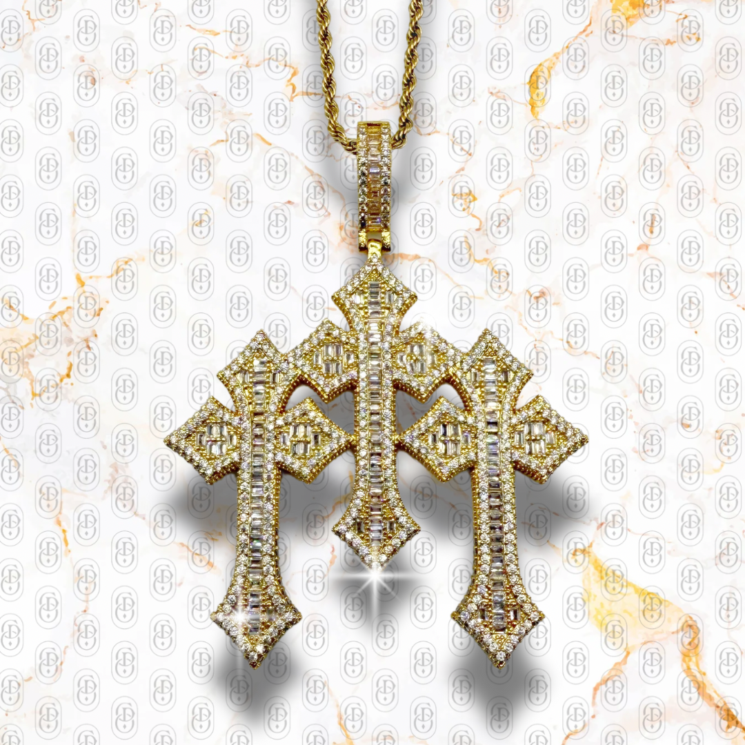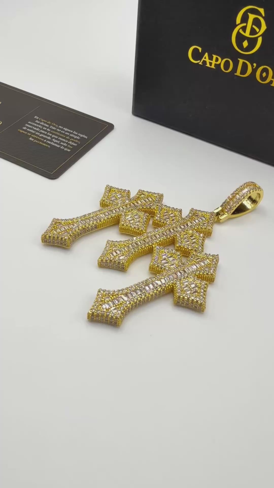 Le pendentif trinità dorata de Capo or C'est un bijou qui représente la majesté et l'opulence. Avec trois croisements dorés en profondeur ornés de circonstances cubiques de coupe de baguette, ce pendentif capture la lumière avec une luminosité qui ne passe pas inaperçue. Son design complexe et sa finition impeccable en font le choix parfait pour ceux qui recherchent un bijou qui symbolise le pouvoir, l'élégance et la foi. Il porte le Trinità Dorata et démontre que le vrai luxe est pour ceux qui osent se démarquer.