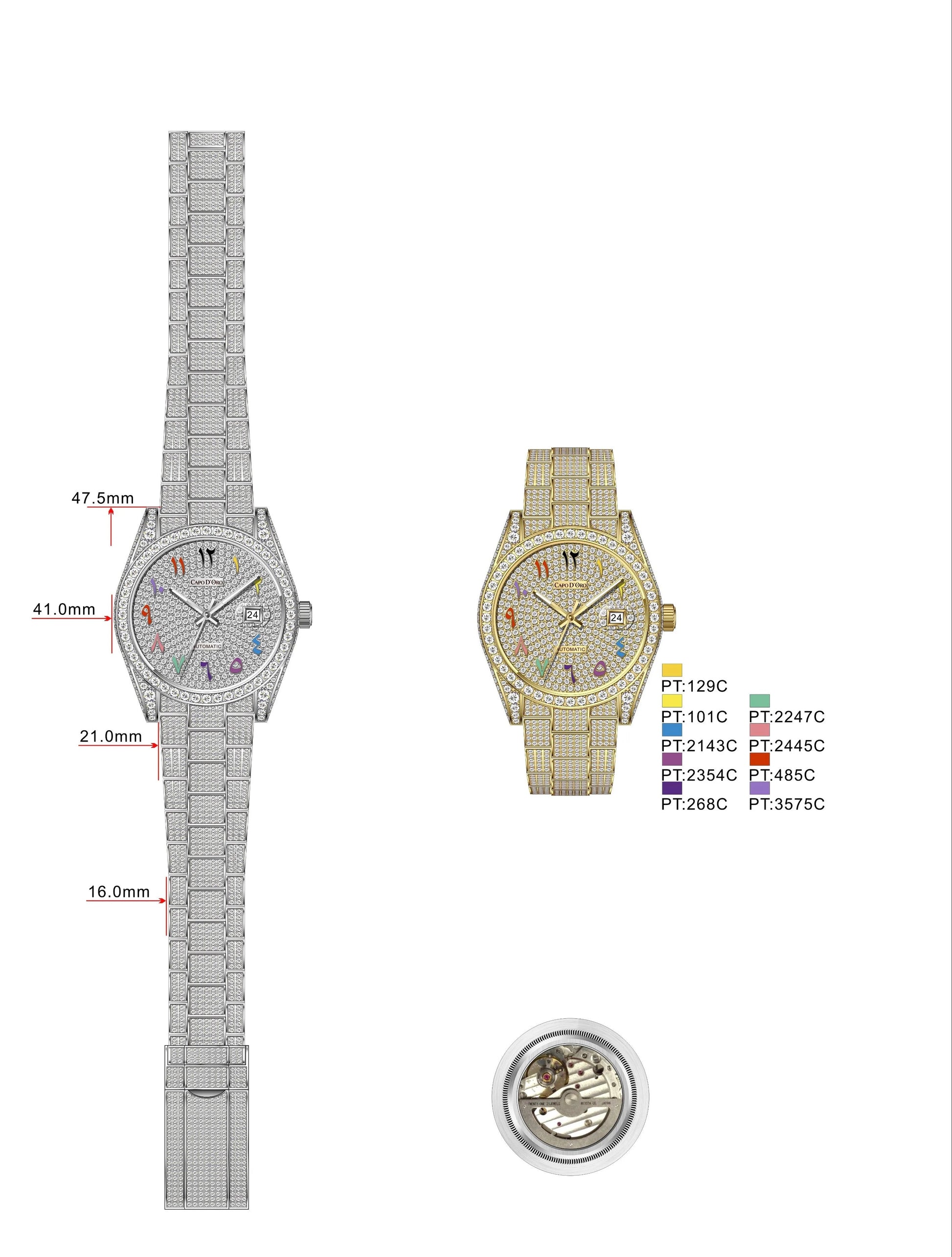 Su esfera destaca por los índices tipo árabes multicolor, un detalle exclusivo que combina sofisticación clásica con un toque moderno y atrevido, creando una presencia visual imposible de ignorar.